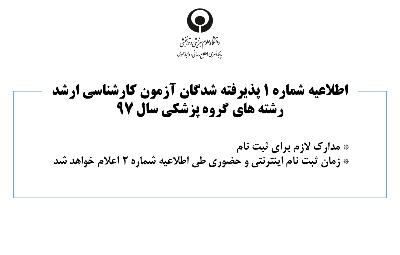 اخبار > اطلاعیه شماره 1 پذیرفته شدگان آزمون کارشناسی ارشد رشته های گروه پزشکی سال 97