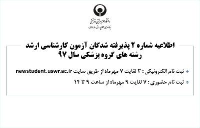 اخبار > اطلاعیه شماره 2 پذیرفته شدگان آزمون کارشناسی ارشد رشته های گروه پزشکی سال 97