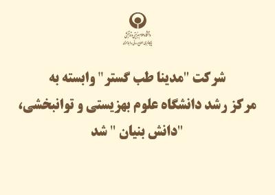 اخبار > شرکت "مدینا طب گستر" وابسته به مرکز رشد دانشگاه علوم بهزیستی و توانبخشی، "دانش بنیان " شد