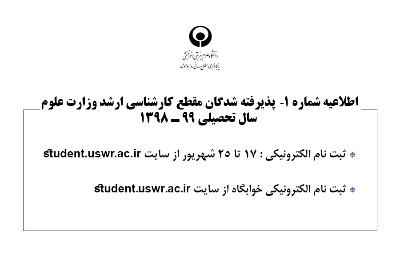 اخبار > اطلاعیه شماره 1ـ پذیرفته شدگان مقطع کارشناسی ارشد وزارت علوم سال تحصیلی 99 ـ 1398
