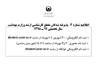 اخبار > اطلاعیه شماره 3ـ پذیرفته شدگان مقطع کارشناسی ارشد وزارت بهداشت سال تحصیلی 99 ـ 1398