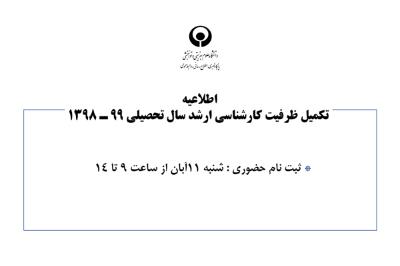 اخبار > اطلاعیه تکمیل ظرفیت کارشناسی ارشد سال تحصیلی 99-1398