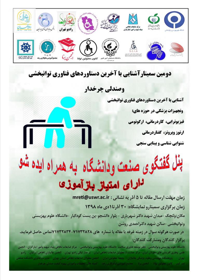 اخبار > زمان ارسال مقالات و دریافت غرفه سمینار " آشنایی با آخرین دستاوردهای فناوری توانبخشی و صندلی چرخدار"، تمدید شد