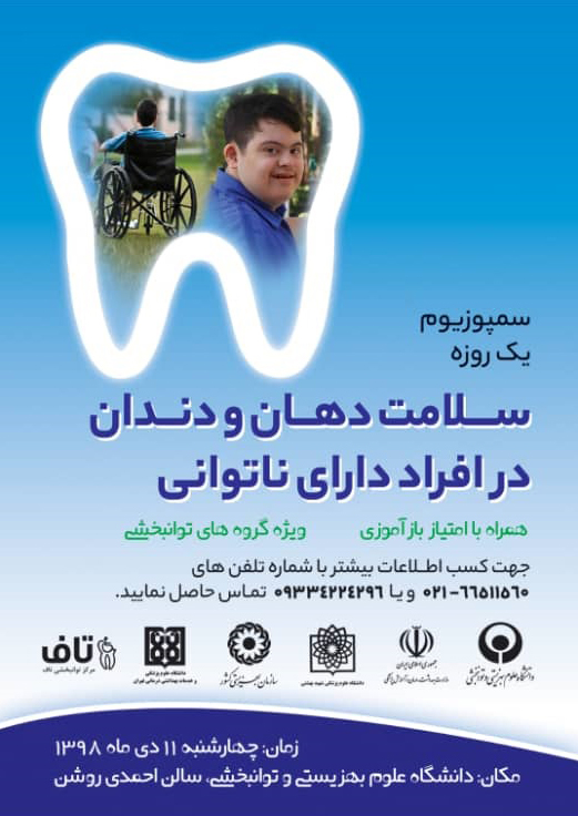 در همین راستا، سمپوزیوم " سلامت دهان و دندان در افراد دارای ناتوانی" که اولین همکاری تیم توانبخشی و دندانپزشکی در کشور است در تاریخ 11 دی ماه در دانشگاه علوم بهزیستی و توانبخشی برگزار می شود و از تمامی کارشناسان و متخصصان دو حوزه توانبخشی و دندانپزشکی دعوت می شود تا با حضور فعال و انتقال تجارب خود، در اتخاذ راهکارهای مناسب در این خصوص مشارکت کنند.