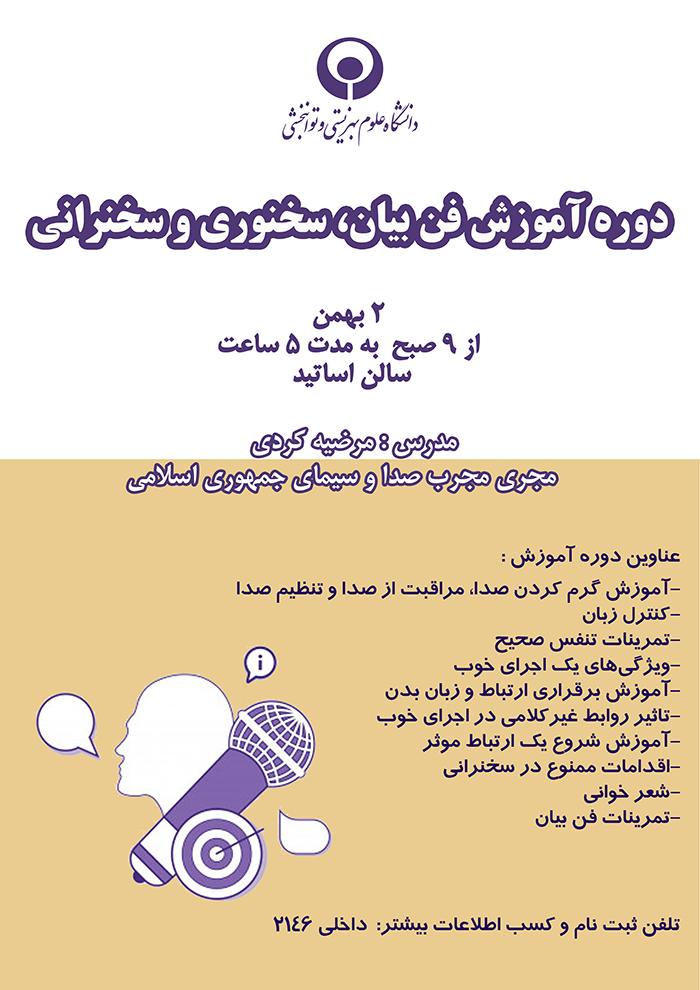 اخبار > دوره آموزشی « فن بیان، سخنوری و سخنرانی »، روز چهارشنبه (دوم بهمن ماه) در دانشگاه برگزار می شود