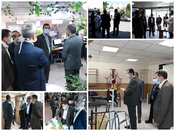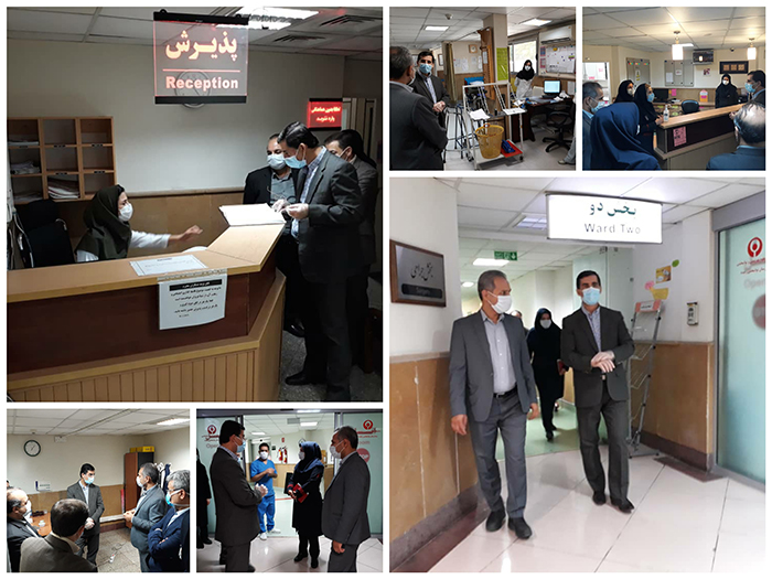 به گزارش وبدای دانشگاه علوم بهزیستی و توانبخشی بنقل از روابط عمومی بیمارستان رفیده، دکتر « بیژن خراسانی » به اتفاق « دکترآزادی، اقای بازارنویی و دکتر اجلی » مدیران توانبخشی، اقتصاد درمان و اداره پرستاری دانشگاه از بدو ورود به بیمارستان، ضمن آنکه مورد کنترل میزان تب و حجم اکسیژن خون قرار گرفتند، به چگونگی اجرای پروتکل های بهداشتی برای بیماران و مراجعین و تجهیز آنان به ماسک جهت پیشگیری از انتقال ویروس کووید 19 و بیماری کرونا ، توجه کردند.