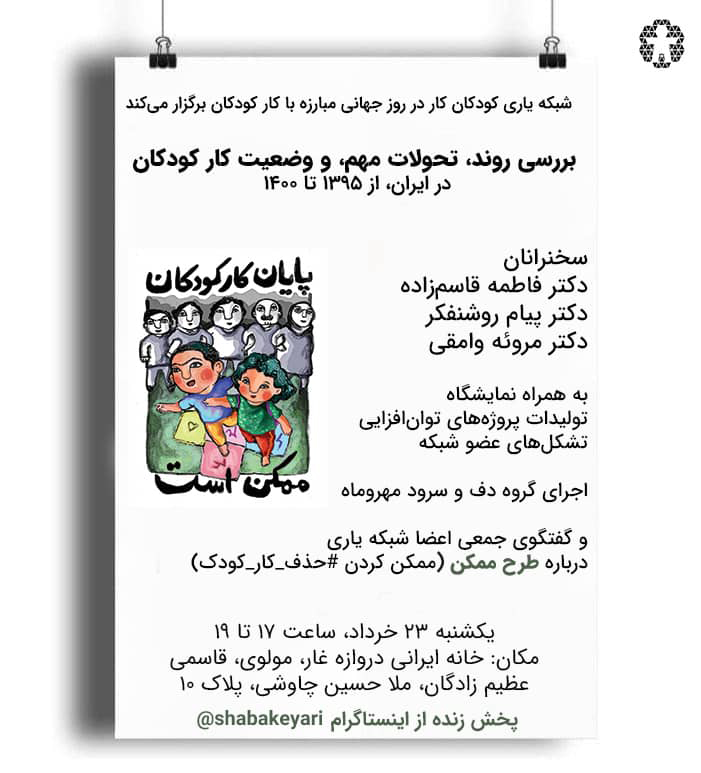 اخبار > نشست " بررسی روند تحولات مهم و وضعیت کار کودکان در ایران، از 1395 تا 1400 " عصر امروز برگزار می شود
