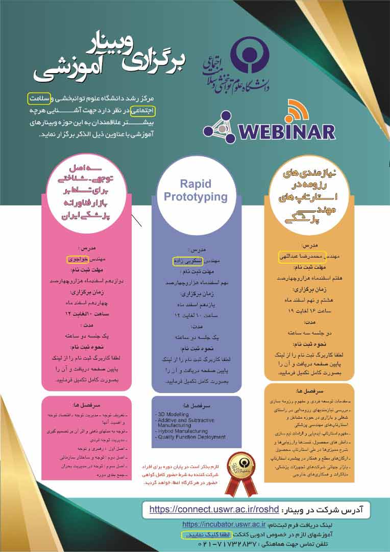 اخبار > برگزاری وبینار « سه اصل توجهی- شناختی برای تسلط بر بازار فناورانه پزشکی»/ مهلت ثبت نام تا 12 اسفند