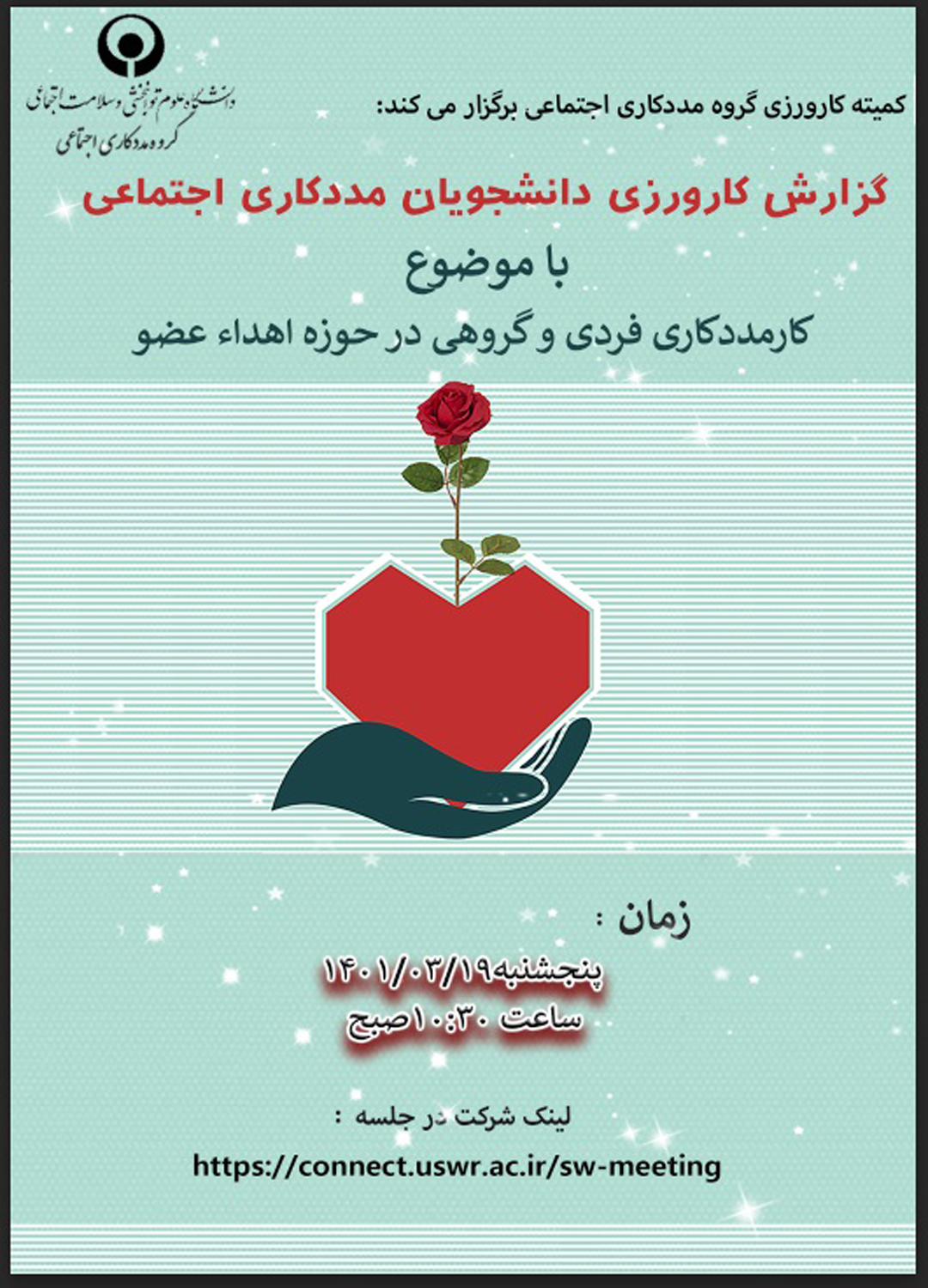 اخبار > گزارش دانشجویان مددکاری با موضوع « کار مددکاری فردی و گروهی در حوزه اهدای عضو » ارائه می شود