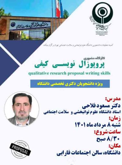 اخبار > کارگاه آموزشی « پروپوزال نویسی کیفی »، صبح روز شنبه برگزار می شود