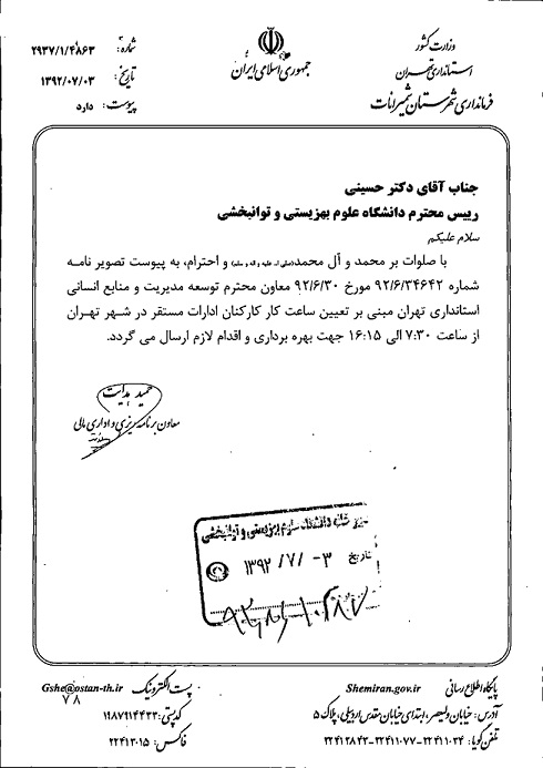 اخبار > تعیین ساعات کار کارکنان ادارات مستقر در شهر تهران