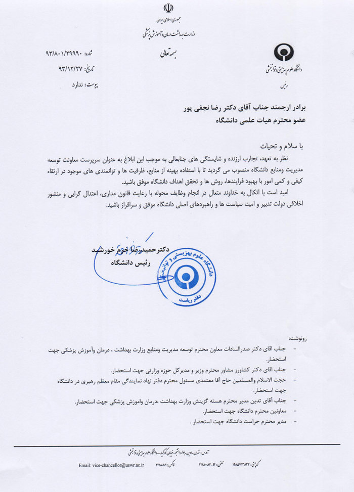 - پیام تبریك معاون درمان و توانبخشی دانشگاه علوم توانبخشی و سلامت اجتماعی در گرامیداشت روز ملی " ارتوز و پروتز"