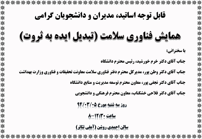 اخبار > همایش فناوری سلامت ( تبدیل ایده به ثروت )