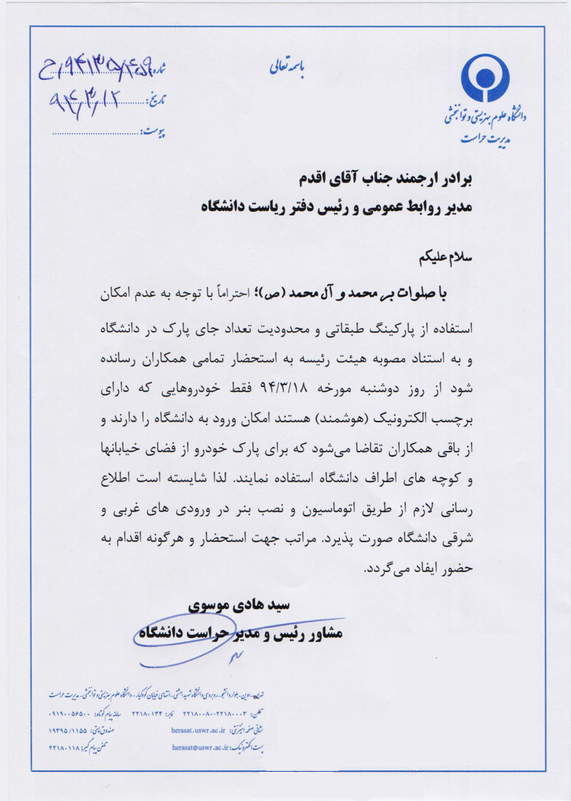 اخبار > مشاور رییس و مدیر حراست دانشگاه اعلام کرد: خودروهایی که دارای برچسب الکترونیک (هوشمند) هستند، امکان ورود به دانشگاه را دارند