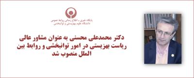 اخبار > دکتر محمدعلی محسنی به عنوان مشاور عالی ریاست بهزیستی در امور توانبخشی و روابط بین الملل منصوب شد