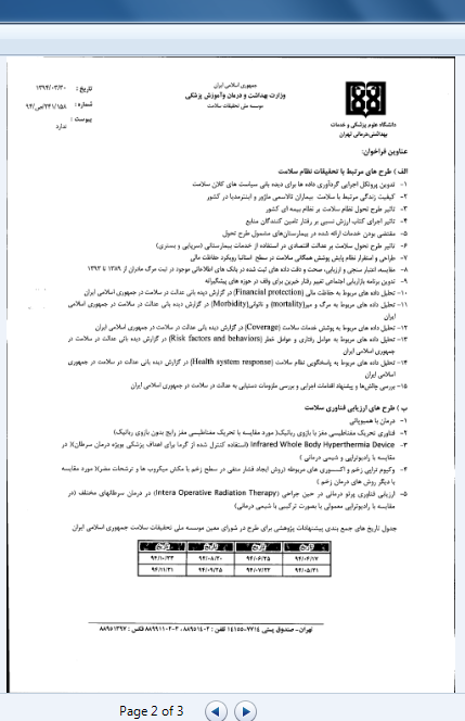 معاونت تحقیقات و فن آوری اطلاعات :موسسه ملی تحقیقات سلامت جمهوری اسلامی ایران اعلام کرد:
