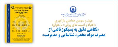 اخبار > چهل و سومین همایش بازآموزی اعتیاد و آسیب های روانی با عنوان " نگاهی دقیق به پسیکوز ناشی از مصرف مواد مخدر، شناسایی و مدیریت"