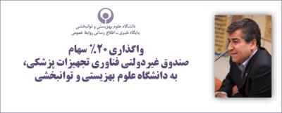 اخبار > واگذاری 20 درصد سهام صندوق غیردولتی فناوری تجهیزات پزشکی، به دانشگاه علوم بهزیستی و توانبخشی