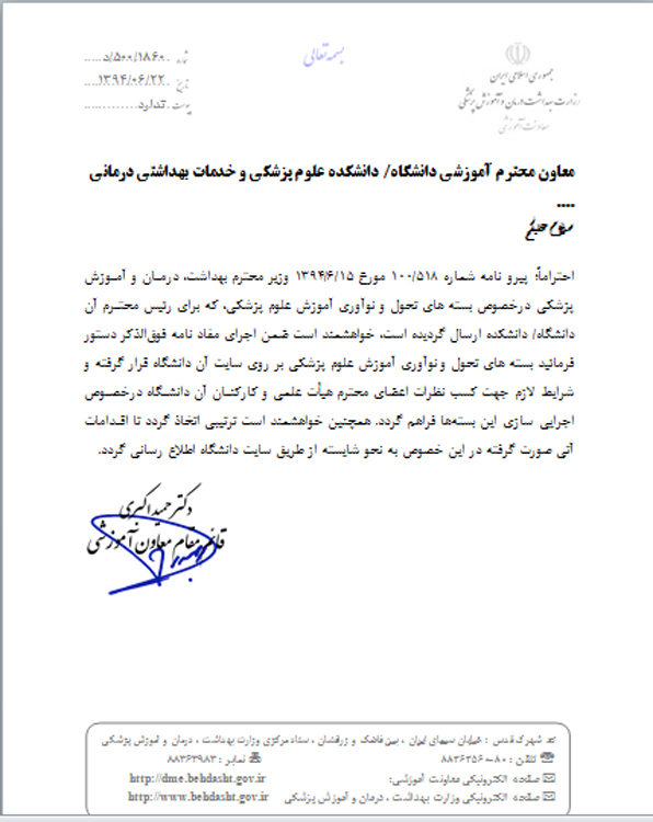 اخبار > بسته های تحول و نوآوری آموزش علوم پزشکی مبتنی بر برنامه آموزش عالی حوزه سلامت