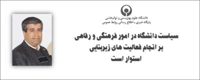 اخبار > سیاست دانشگاه در امور فرهنگی و رفاهی، بر انجام فعالیت های زیربنایی استوار است