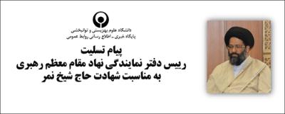 اخبار > پیام تسلیت رییس دفتر نمایندگی نهاد مقام معظم رهبری به مناسبت شهادت حاج شیخ نمر
