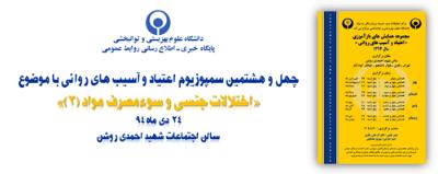 اخبار > همایش بازآموزی اعتیاد و آسیب های روانی با عنوان " اختلالات جنسی و سوءمصرف (2)" برگزار شد
