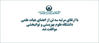 اخبار > با ارتقای مرتبه سه تن از اعضای هیات علمی دانشگاه علوم بهزیستی و توانبخشی موافقت شد