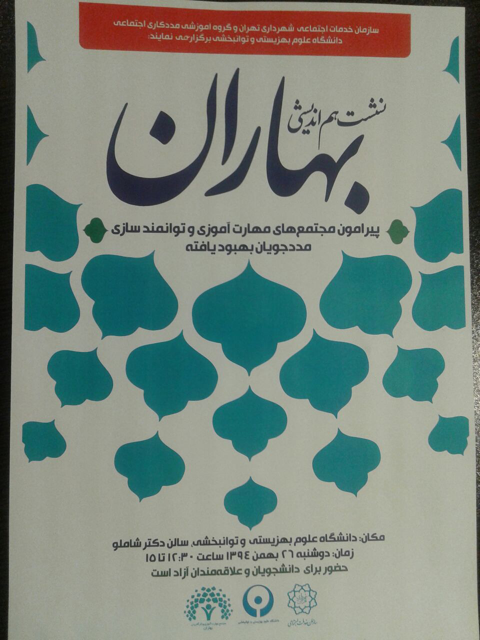 اخبار > گروه مددکاری اجتماعی دانشگاه برگزار می کند: نشست هم اندیشی با عنوان «بهاران»