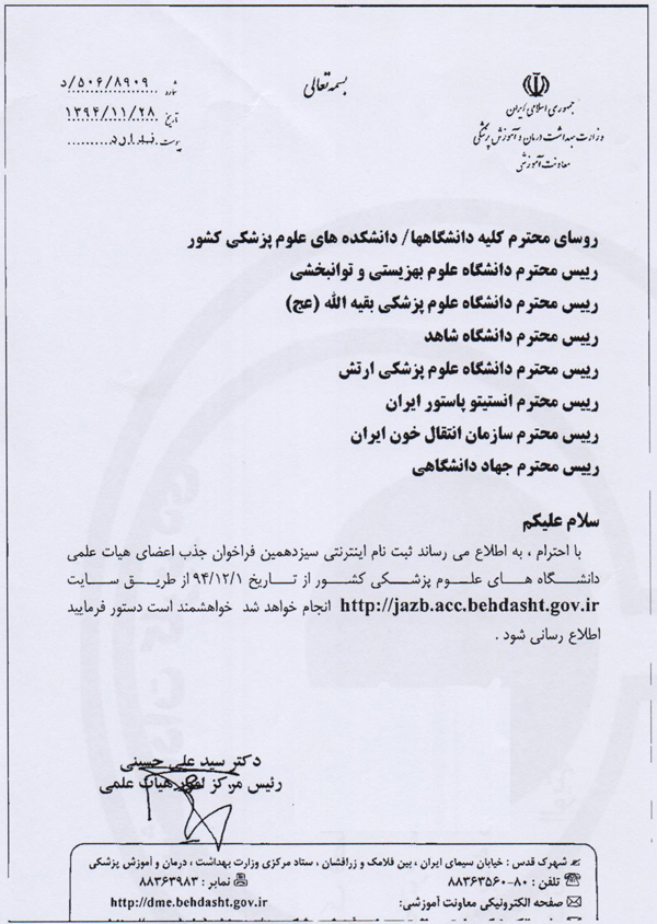 اخبار > رییس مرکز امور هیات علمی وزارت بهداشت اعلام کرد: فراخوان جذب اعضای هیات علمی دانشگاه های علوم پزشکی کشور