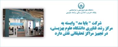 اخبار > شرکت " بایا مد" وابسته به مرکز رشد فناوری دانشگاه علوم بهزیستی، در تجهیز مراکز تحقیقاتی نقش دارد