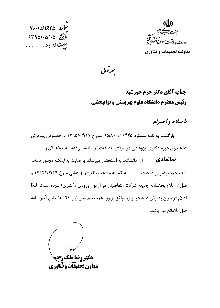 - اطلاعیه ثبت نام حضوری پذیرفته شدگان آزمون دكتري تخصصي سال ۱۴۰۲