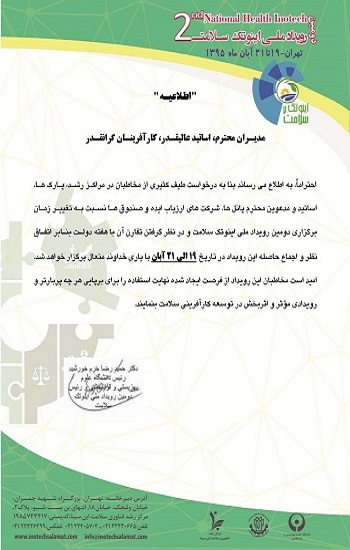 اخبار > دومین رویداد ملی اینوتک سلامت ، 19 آبان ماه امسال برگزار می شود