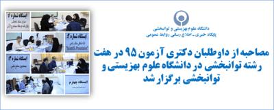 اخبار > مصاحبه داوطلبان دکتری آزمون 95 در هفت رشته توانبخشی و رفاه اجتماعی در دانشگاه علوم بهزیستی برگزار شد