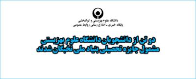 اخبار > دو تن از دانشجویان دانشگاه علوم بهزیستی مشمول جایزه تحصیلی بنیاد ملی نخبگان شدند