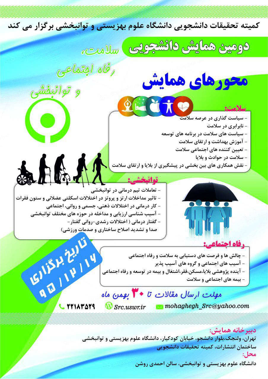 اخبار > کمیته تحقیقات دانشجویی دانشگاه برگزار می کند: دومین همایش دانشجویی سلامت، رفاه اجتماعی و توانبخشی